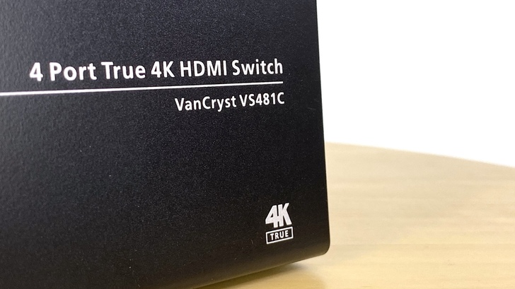 4 Port True 4K HDMI Switch,VanCryst VS481C。特別強調真 4K,是因為 VS481C 可以達到 4096 x 2160 60Hz 的 4:4:4 採樣,其頻寬達到 18 Gbps。像上一代 VS481B 只有支援到 4096 x 2160 60Hz 4:2:0 的規格,很明顯 VS481C 是在其之上的。