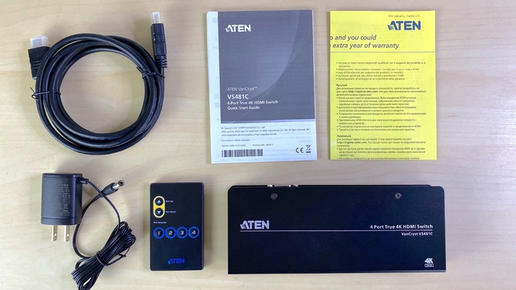 今天要開箱的的這盒是 ATEN VS481C,這台是四進一出的 HDMI 切換器,並具備 RS-232 可以作為系統控制。有時在會議室大家要輪流簡報內容,透過 VS481C 就可以快速切換不同主機的訊源。