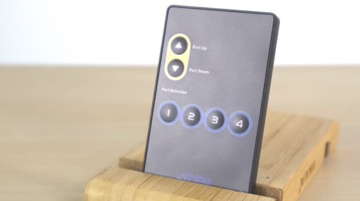 遙控器非常小巧,跟名片差不多,厚度也非常薄。按鍵採用薄膜式按鍵,按壓力道要比較大,但也不容易誤觸。如果不小心弄丟的話,可以到 ATEN 採購官網 AtZone 找到遙控器。