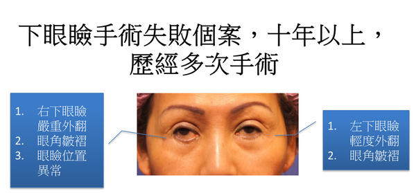 患者之前遇到經驗不足整形醫師,導致有眼袋併發症