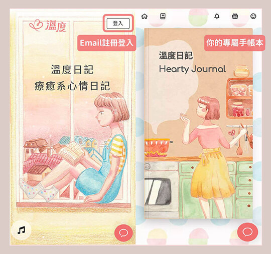 開始記錄生活前,要先以Email註冊登入,方便雲端備份、跨平台同步,登入後便可看到專屬自己的手帳日記本了。