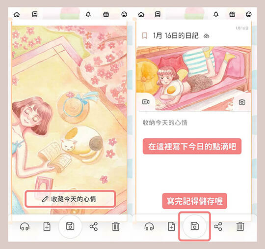 點選「收藏今日心情」,新增一篇日記,開始書寫一天的點點滴滴。(延伸閱讀:擺脫流水帳,日記可以寫甚麼?)