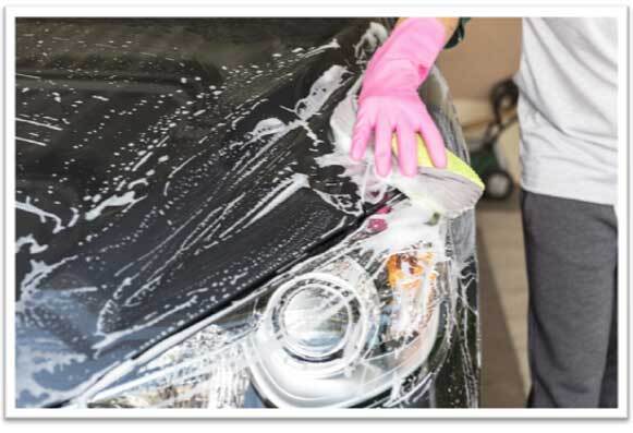 使用的中性清潔劑,清潔前、後檔風玻璃玻璃,可讓視野清楚,也可減少起霧。玻璃頂部也要擦拭。車輛外部的玻璃,先用一塊乾淨布,沾清水擰乾後,在玻璃窗擦一下,若有水痕也可用報紙來回擦拭。因為報紙有字墨不要碰到窗框、車身,再用清水擦拭一次。注意:車輛使用的清潔劑,種類繁多,請使用中性玻璃清潔劑和柔軟的乾布清潔,選用環保和食用級標示之清潔劑可避免小孩誤食 。