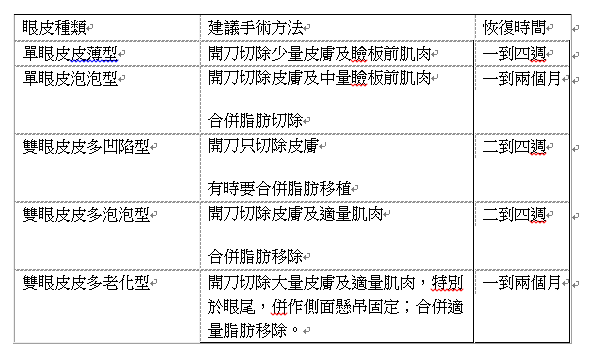 作者上眼皮切除泡泡眼手手術的分類