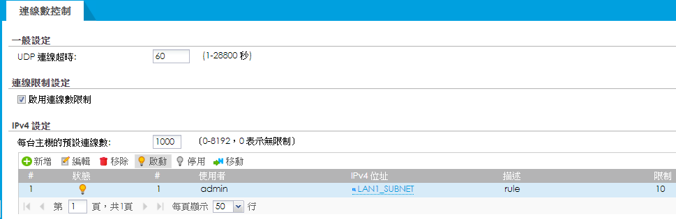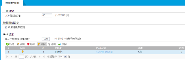 ▲ 限定連線數的地方還有直接監控每台主機的IP連線數與UDP的連線時間,不過在接收某些多媒體串流時須將UDP連線超時的功能關掉ˋ。