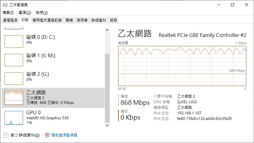 ▲ 經測試後ˋ,乙太網路在800~999Mbps之間震盪徘徊,想當然爾ATP100與PC的網路接卡住不會動,這也可以當作DOS侵入測試的一環。