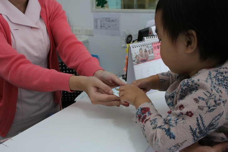 剛開始陳醫師會先跟鑫點子妹妹說說話,告訴她要幫他檢查她的小牙齒!