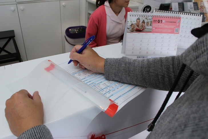 剛掛號時,她超愛跟人家打招呼的!!整個喜感~!!哈哈!小朋友牙醫收費是50元~診所的裝潢是走現代簡約風呢~!
