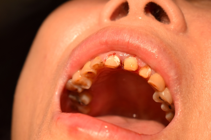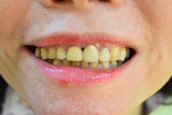 因為有磨牙習慣她的牙齒被磨得很小顆幾乎已經傷到牙神經