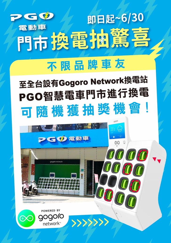 PGO也指出,此次推出的「換電抽驚喜」活動不限電動車品牌,只要是PBGN車友都非常歡迎大家一起共襄盛舉,各門市會隨機放置驚喜卡,一次拿不到沒關係,多來PGO智慧電車門市換電幾次就能拿到囉!為了讓更多民眾能親身感受到Ur1的魅力,PGO後續還會推出一系列門市活動,要讓消費者來店都能有最棒、最超值的試乘、購車體驗!