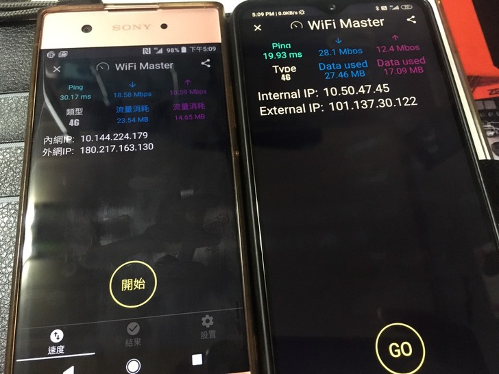 右邊是 Xiaomi Redmi Note 8 Pro 裝 亞太 168 月租不限速吃到飽