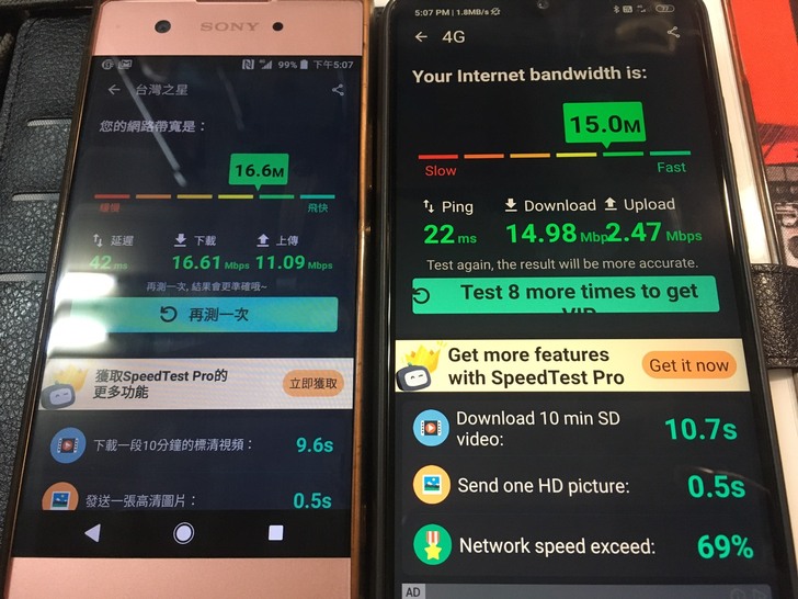 台星 0 元 16.6M / 亞太 168 不限速 下載速度 15M