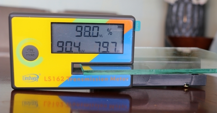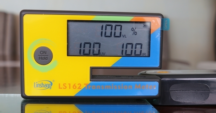 使用業界普遍使用的「隔熱紙測試儀」來測量,就可以看到每一款隔熱紙的透光度、抗 UV 和抗 IR 的相關數值。