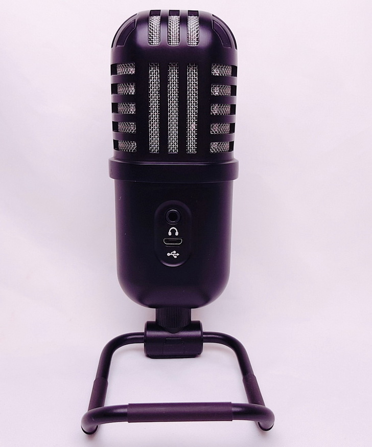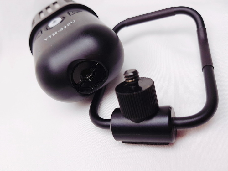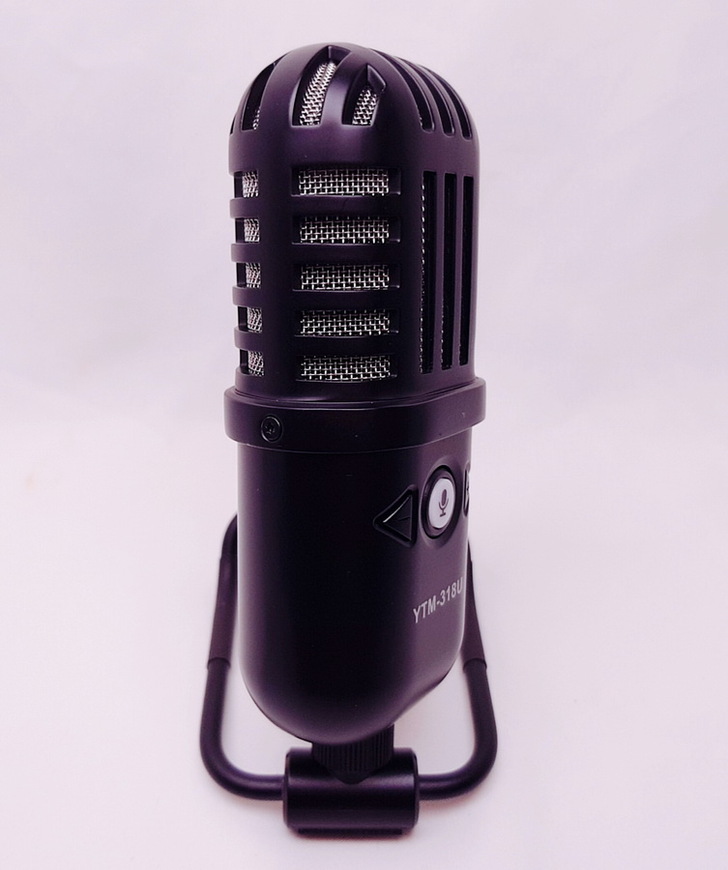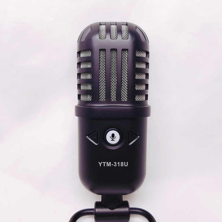 ▼ YTM-318U 正面:黑色系的鋅合金金屬材質,質感相當不錯,圓潤的造型還蠻可愛的;上半部為麥克風柵欄網罩,下半部則有功能操作鍵及型號。