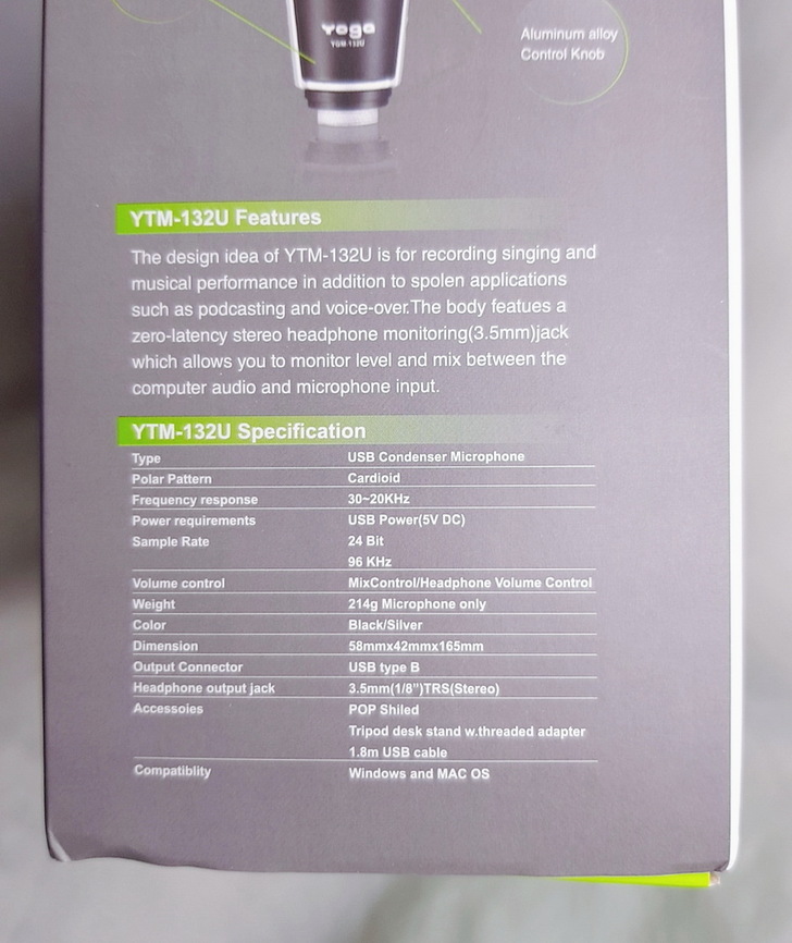 【Yo-tronics YTM-132U USB直播用麥克風 規格】