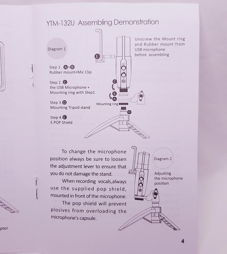 ▼ 主體與配件:YTM-132U麥克風、防噴器、腳架、USB連接線、說明書。