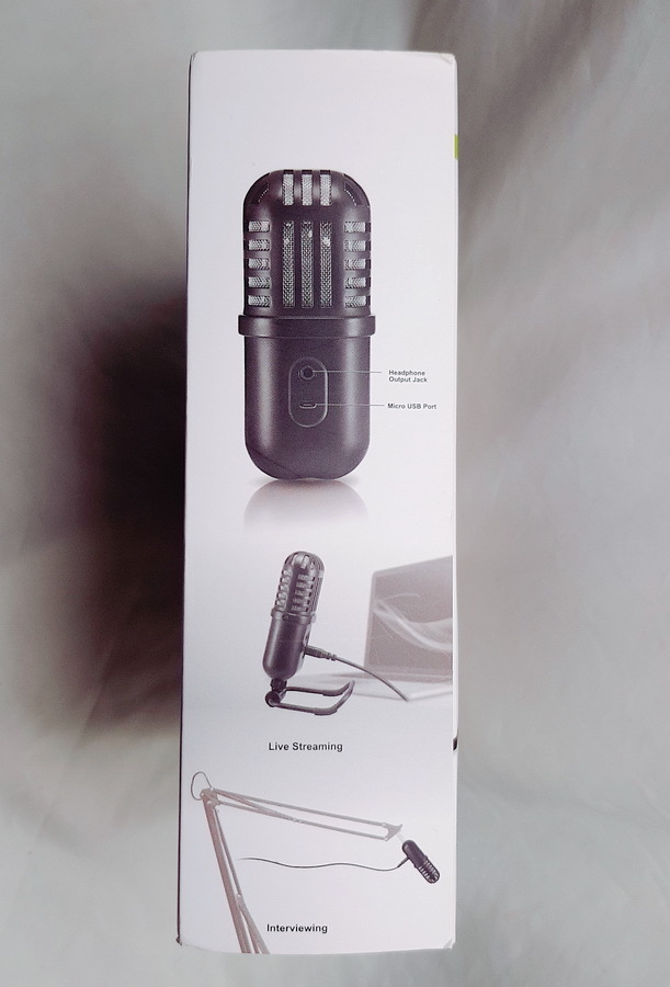 ▼ 包裝正面:白色紙盒印上品牌LOGO,麥克風樣貌及型號。