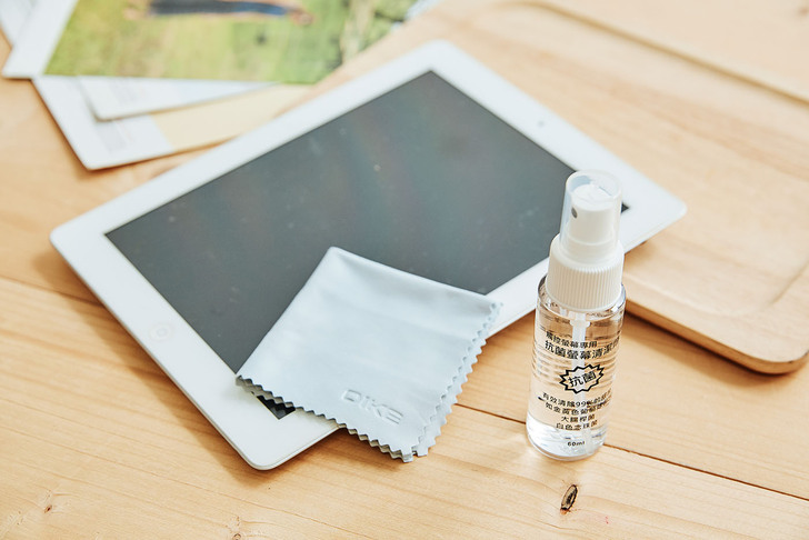 ▲抗菌清潔液是經過 SGS 認證的,而且是 MIT 台灣製,品質相對上比較放心,待會就用這台 N 年沒清潔過的老 iPad 來試試效果吧!