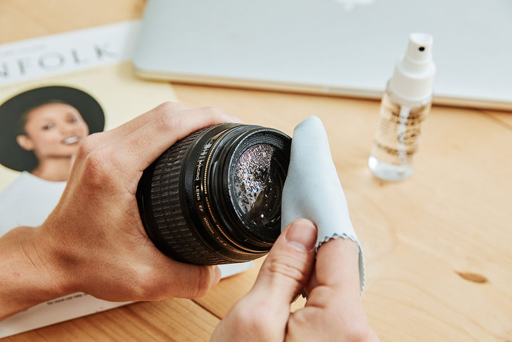 ▲為什麼要強調是「超纖」擦拭布呢?原因在於像紙巾、眼鏡布等,由於質地較粗,擦完後經常會有殘留物,有些甚至會刮花螢幕,如果是上圖的相機鏡頭,不小心刮花那可就賠慘啦,因此才說要選擇細纖維材質,對精密的 3C 器材比較不會造成傷害。