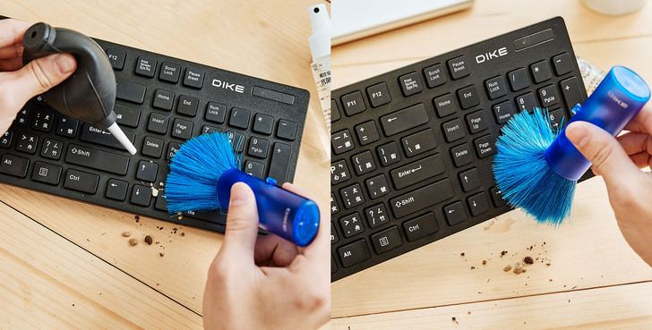 ▲現代人習慣邊吃東西邊追劇,食物碎屑很容易卡在鍵盤縫隙,過去懶人的做法是把鍵盤倒過來拍打,但這樣的清潔手段顯然不夠徹底,此時建議可以先用伸縮軟刷毛與橡膠空氣吹塵球進行初步清潔。