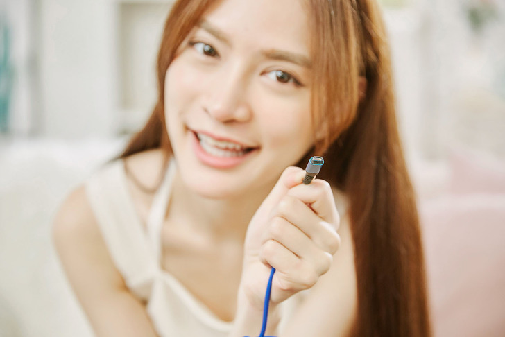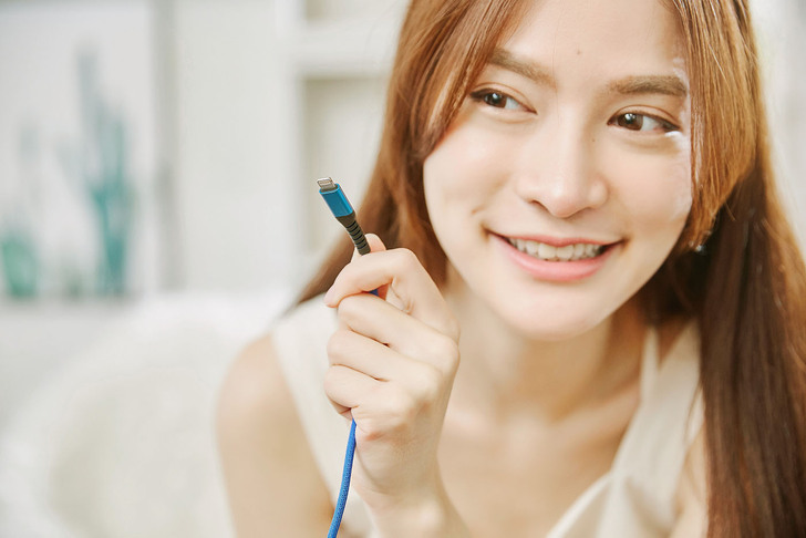 ▲仔細看照片上這個由妹子為大家掰開展示的連接處,可說是一條充電線最容易壞的地方,因此耐彎曲真的、真的、真的非常重要啊,據官方表示,TCSTAR TCW-AUCT1120 的耐用度可是一般線材的 5 倍!