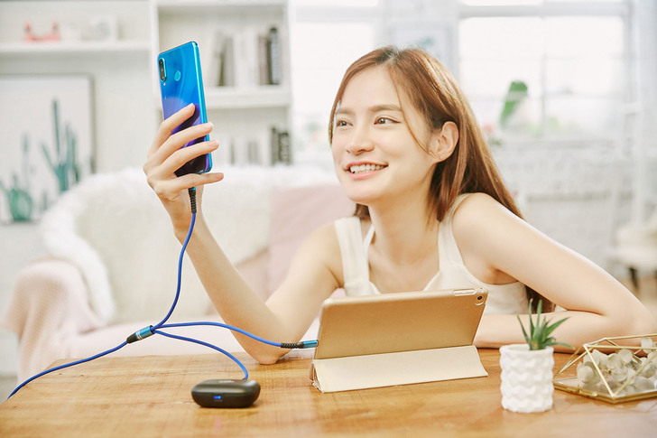 ▲配備三種接頭最大的好處,就是能像照片中這樣一次為三樣產品充電,在開心追劇的同時,還能一邊為手機和耳機充電。