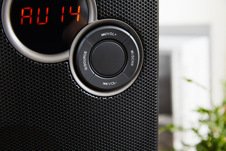 ▲控制面板提供電源/模式切換、音量減/上一首、音量增/下一首、播放/暫停/靜音/搜台…等操作功能。