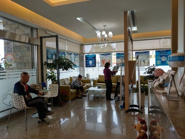加上做治療那天新華牙科一樓看診區陽光普照灑透院所等候沙發區及看診檯,