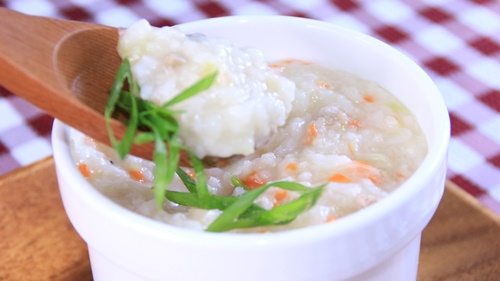 讓平白無奇的白粥裡的蔬菜與絞肉變得更加鮮 更加順滑