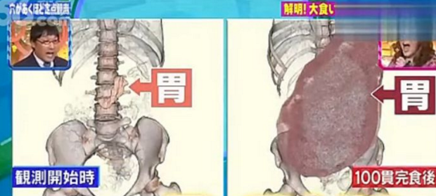 你要是看过密子君的视频就知道,,曾在阿里巴巴园区现场生吞8斤米饭走红,她可以在4分钟内吃掉25个肉包子,在5分钟内吃掉16条粽子还能速食10桶超辣火鸡面,甚至是一整只的烤全羊,都不在她话下,不过小编要提醒你的是,千万别在晚上看她的视频,要不然你会睡不着的!有人会问是不是他们的胃比较大呢?还真的是,下图是日本大胃王木子吃下100个寿司之后的胃,是不是惊呆了!但也有传闻说他们是催吐的!这个我们就无从得知了!催吐归催吐,可人家能吃得下呀!换你,你能吃的下吗?