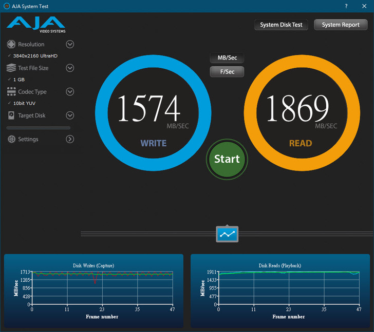 再來是偏向剪輯應用的AJA System test