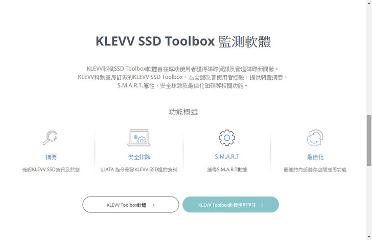 下方也可以下載Klevv SSD Toolbox監測軟體,有空可以安裝看看