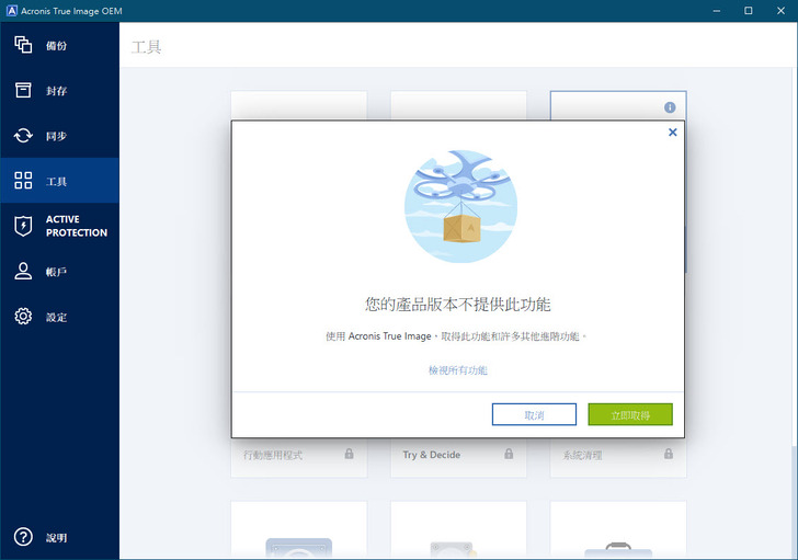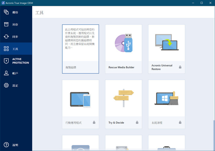 不過這個OEM版本只有複製磁碟與救援媒體製作功能可以使用