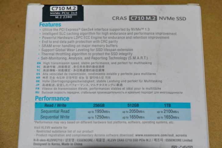 Klevv CRAS C710 1TB 外包裝與產品一覽