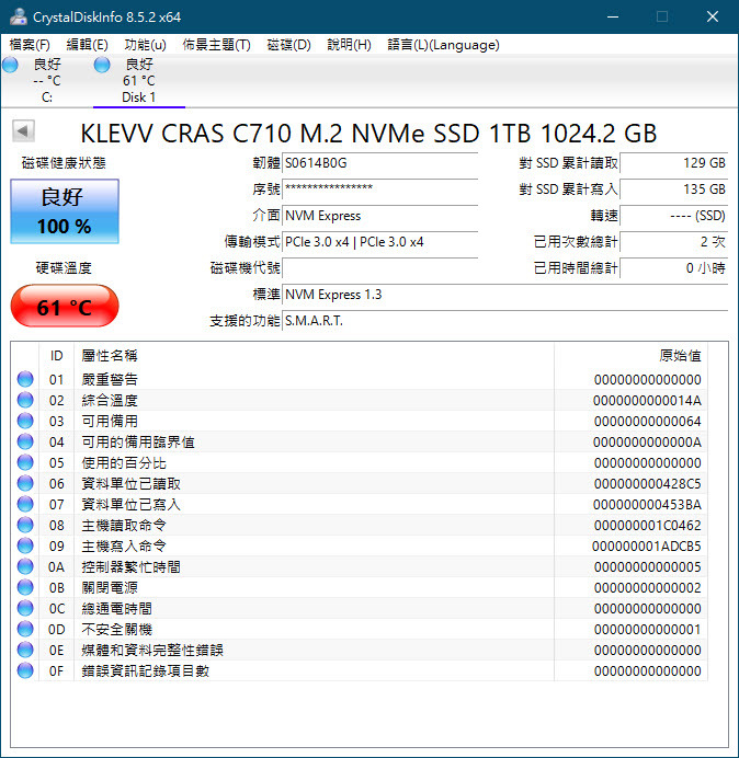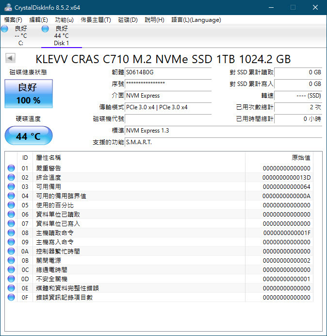 目標硬碟當然為KLEVV C710 1TB 兩顆皆為NVMe介面