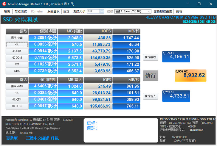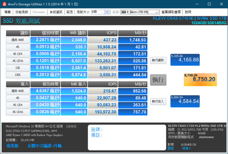 Klevv CRAS C710 1TB 實測部分