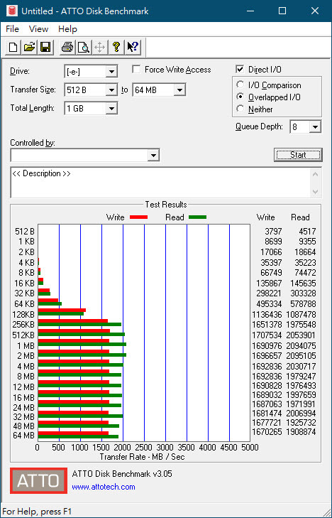 Read: 2097.44MB/s、Write:1700.95MB/s
