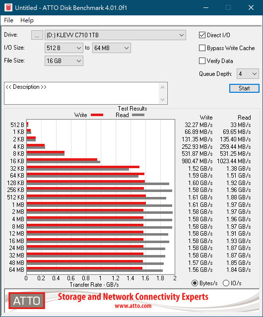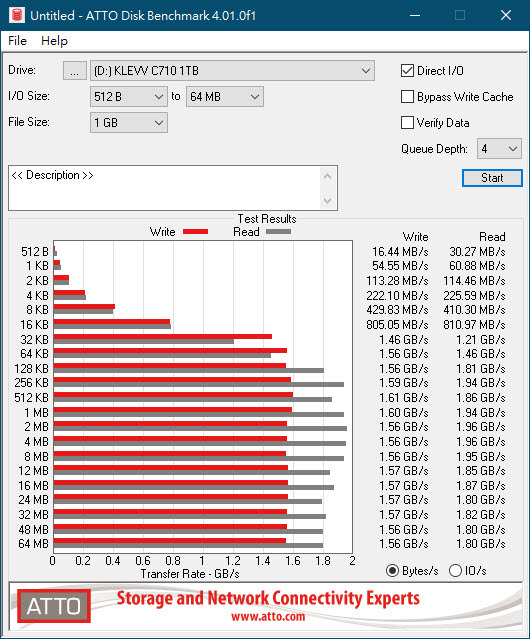 ATTO Disk Benchmark 4.01 檔案大小設定為1GB