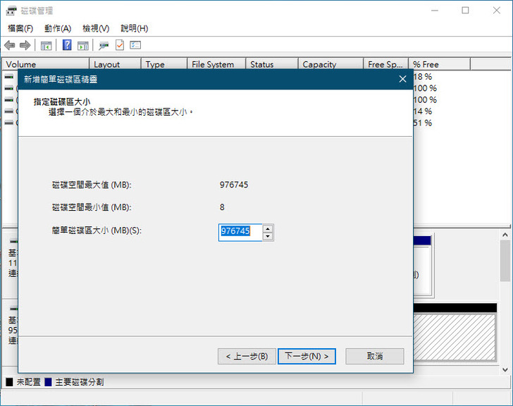 完成之後磁碟內容所顯示的總容量為完整的1TB,也就是1024GB