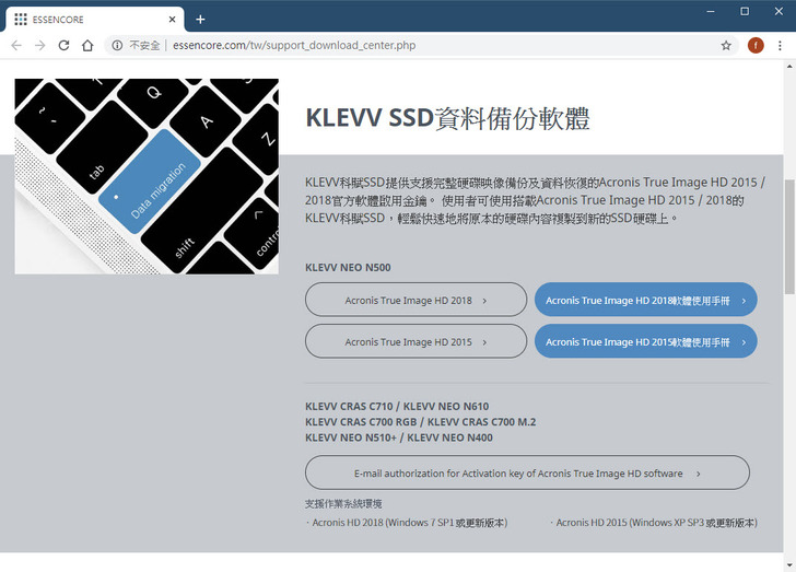 目前,在Klevv的SSD產品線、幾乎都會附上一套Acronis的系統轉移軟體