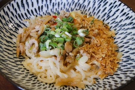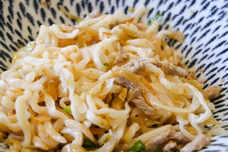 朋友點的大王肉燥乾麵上桌香氣十足的肉燥搭配油蔥酥跟蔥花,說多誘人就有多誘人,攪拌陣陣傳出的香氣讓人毫無抵抗,Q彈拉麵搭配獨門肉燥,我覺得不管誰都會愛上這滋味,而且我超想問為什麼麵條能這麼好吃XD