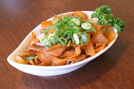 對我來說吃麵一定要配小菜,沒有小菜好像少了什麼一樣,而大王麻辣乾麵的小菜隨便點隨便好吃,煙燻豬耳朵大家都不陌生,幾乎在麵店常見到,但要弄得入味好吃需要功夫,這的煙燻豬耳朵很入味,加上豬頭皮口感QQ脆脆的,吃了很涮嘴的小菜