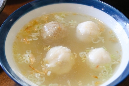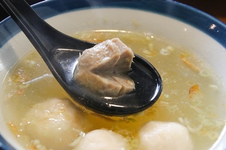 魚丸湯只要食材魚丸有新鮮,然後在撒上油蔥,煮出來的湯味道會很鮮美,碗裡幾顆魚丸中還放著一顆貢丸,十足湯鮮味美的魚丸湯,一口接著一口很快就喝光光,魚丸吃起來彈牙,感覺魚漿用得很實在