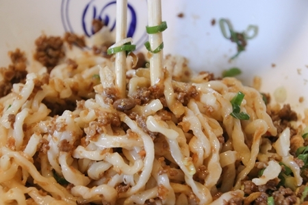 先說我點輕辣的榨菜肉絲乾麵,滿滿的油蔥跟榨菜肉絲,用看的就讓人吞口水,更不用說那個香氣有多逼人!!
