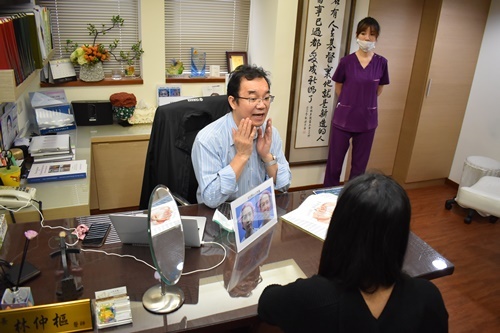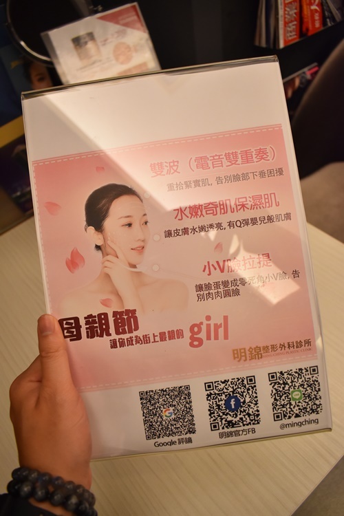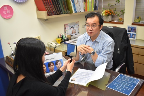 因為防疫關係,在等候區只能分開坐4人,保持社交距離,所以要來明錦一定要先預約喔!過不久護士就帶我和閨蜜一起進入諮詢室,是一間獨立諮詢室隱密性很好,林院長比我想像中年輕,因為我想主任都會是比較資深的醫師,通常年紀會稍微比較大。諮詢時醫師會給一面鏡子我,問我最在意的地方是什麼,他會特別加強,並給出專業意見。