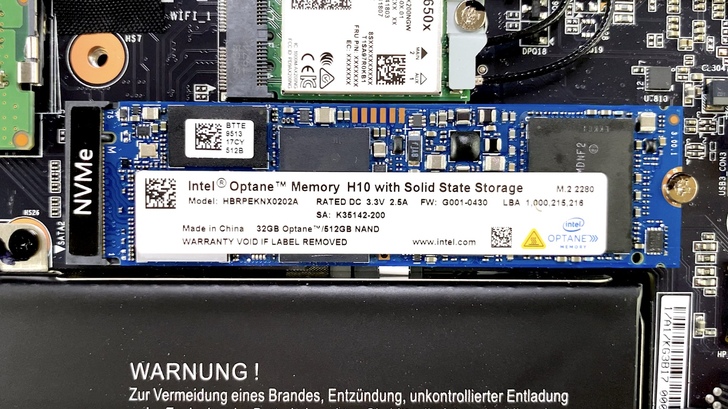 儲存方面相較上一代也有改變,採用 Intel Optane Memory H10,容量是 512GB。