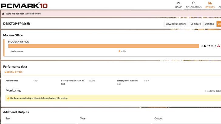 在 PCMark 10 現代文書的場景下,續航力測試為 6hr 37min。意味著如果你出門在外,除了打個文書,還能用超強的效能修個 PS 或微調 .ai 檔案。當然如果三四個小時還修不好,那也不是你的錯,是你的客戶改太多了。