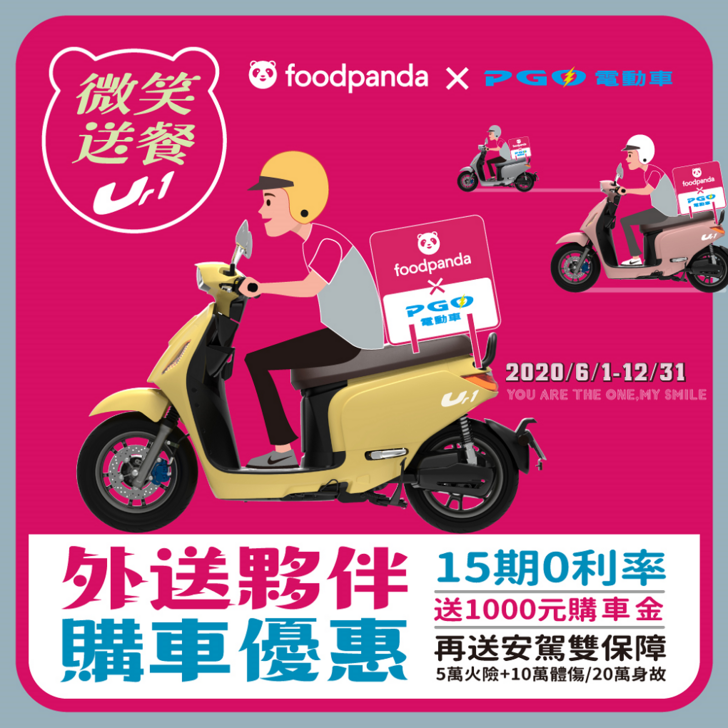 繼上次與foodpanda油車的合作大獲好評後,又趕緊祭出第二波PGO電動車Ur1的合作,就是要體恤辛苦的 foodpanda外送夥伴,現金/分期購車都享超棒的專屬優惠。