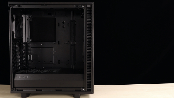 總共會有三款,都是黑色,原本還想說會不會跟 Define Compact 一樣出白色,但目前 Define 7 Compact 並沒有白色的計畫。底部有兩個 3.5" 的磁碟空間,硬碟架也是可以完全拆除,進一步加大電源供應器理線的空間。