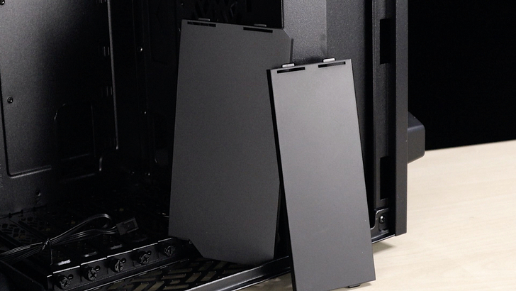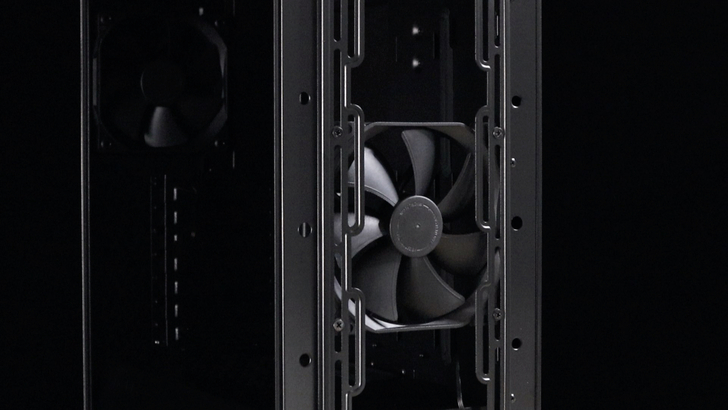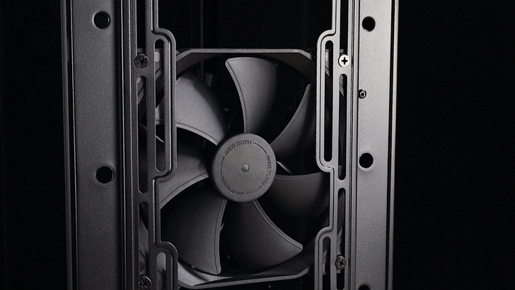 原廠隨附兩個風扇,前置一個 140mm 風扇,後置一個 120mm 風扇。在 Logo 字樣上方,可平躺安裝兩顆 2.5" 磁碟,這裡的安裝架並沒有隨附在機身中,可能要另外詢問代理商鈦宇數位。